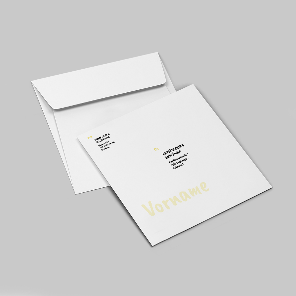 Mit kreativ bedruckten Kuverts können Sie die Geburt Ihres Kindes in einem ganz besonderen Licht erscheinen lassen. Bei uns erhalten Sie Briefumschläge in verschiedenen Formaten und Materialien.